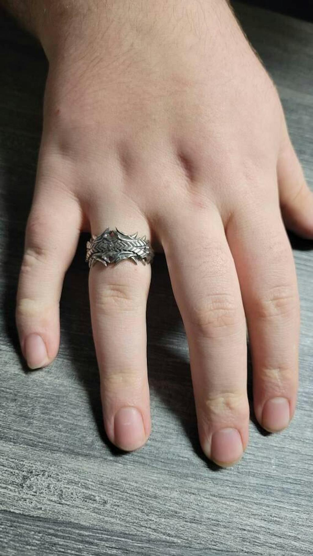 • Draconic band with aggressive, sculptural detailing